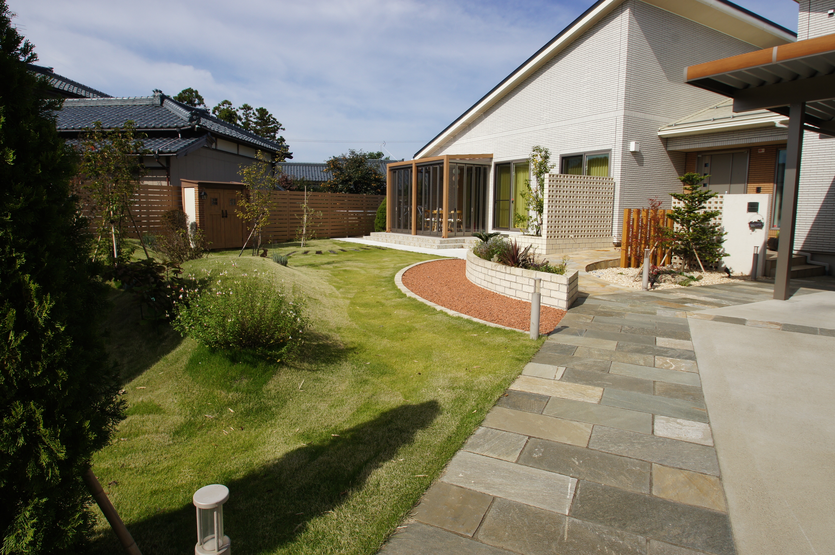 芝生とテラスで寛ぐあるお庭 11月 05, 2016 Categories : 一般施工例 Author: pgc2015ex Tweet Pocket のんびりと寛ぐテラスから望む芝生のお庭 休日の気持ちの良い朝はテラスで朝食 曲線を描くスロープと目隠しのレンガ Y ご家族の帰りを迎えるライティング